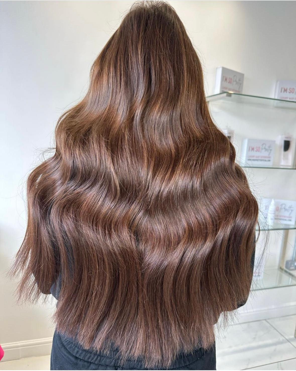Our luxury Brazilian Nano Tip hair extensions have a silky texture, natural wave, and lasting durability. Soft and versatile, they offer effortless styling and a naturally voluminous look.